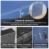 - Durable Construction: Our patio sectional set is made of durable PE rattan wicker and high quality steel frame. Strong steel frame supports outdoor sofa stability and balance. The cushion covers are made from 250g polyester cloth. The sofa fasteners clips are included, which can prevent the outdoor seating from moving. The removable cushion covers come with zippers and are machine washable.