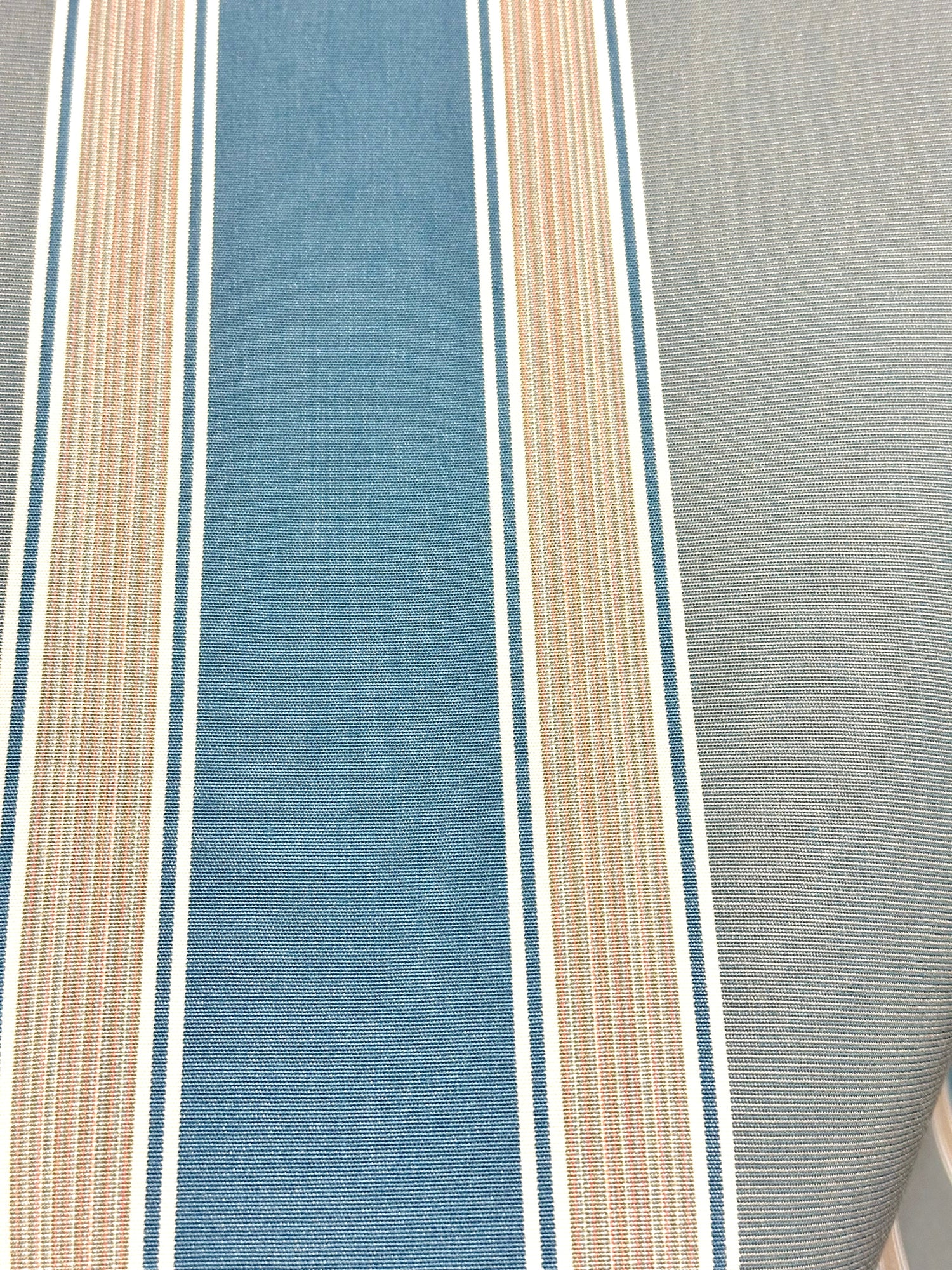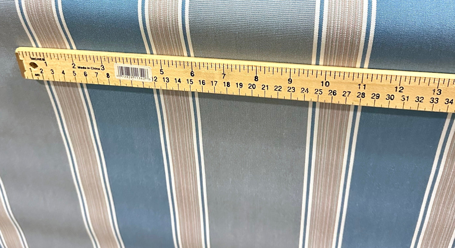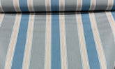 Vertical Stripes in shades of blue, light blue and a center stripe with a mix of shades with a 8.9" (22.61cms) repeat
